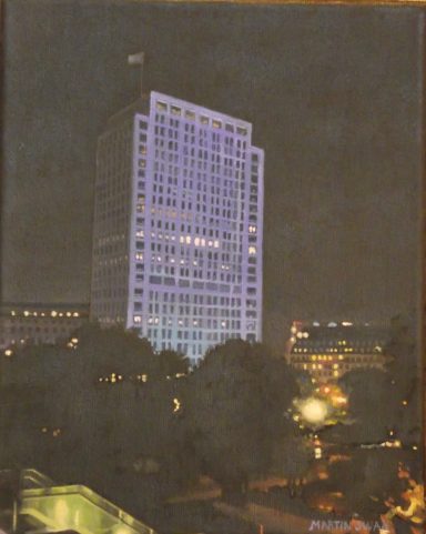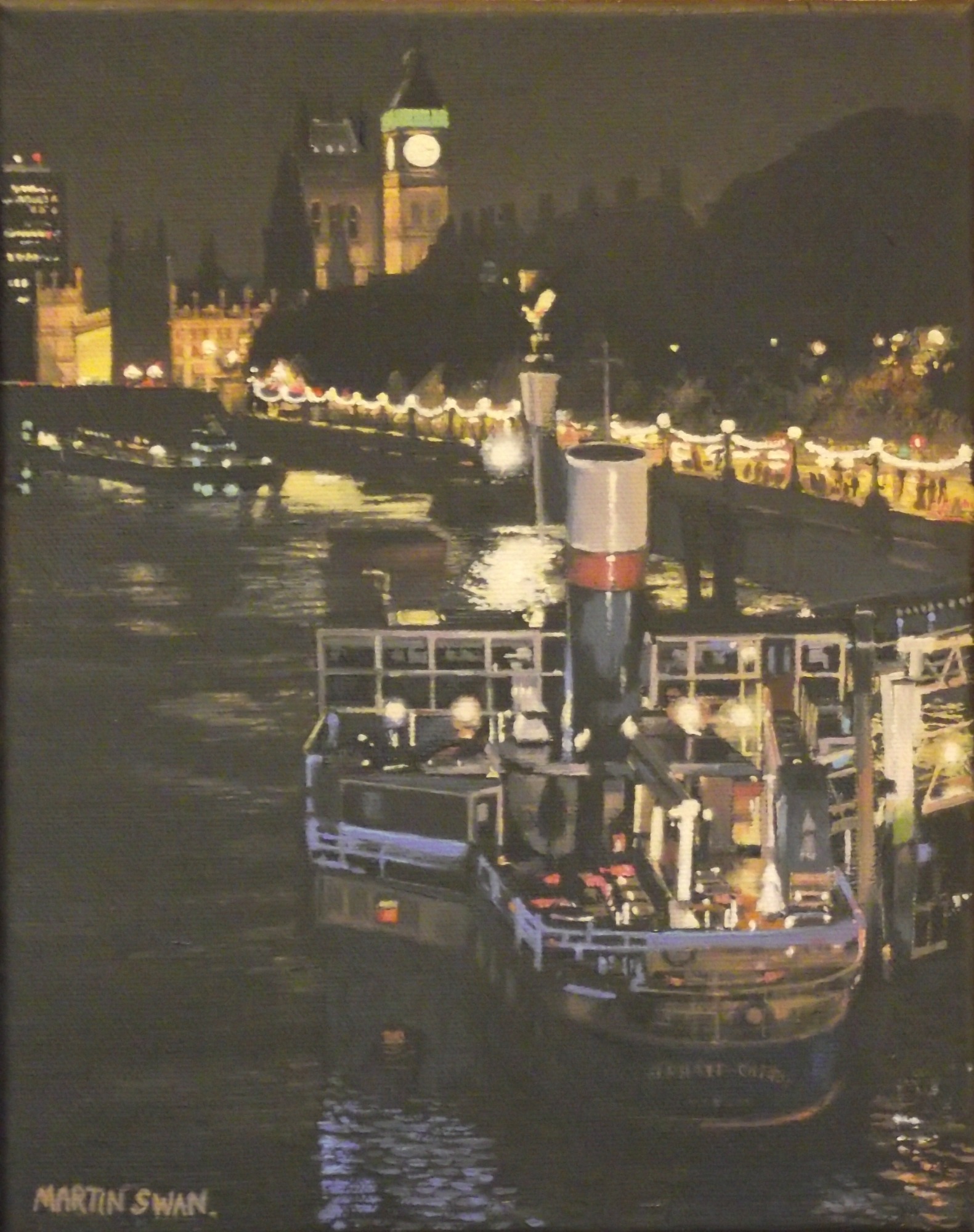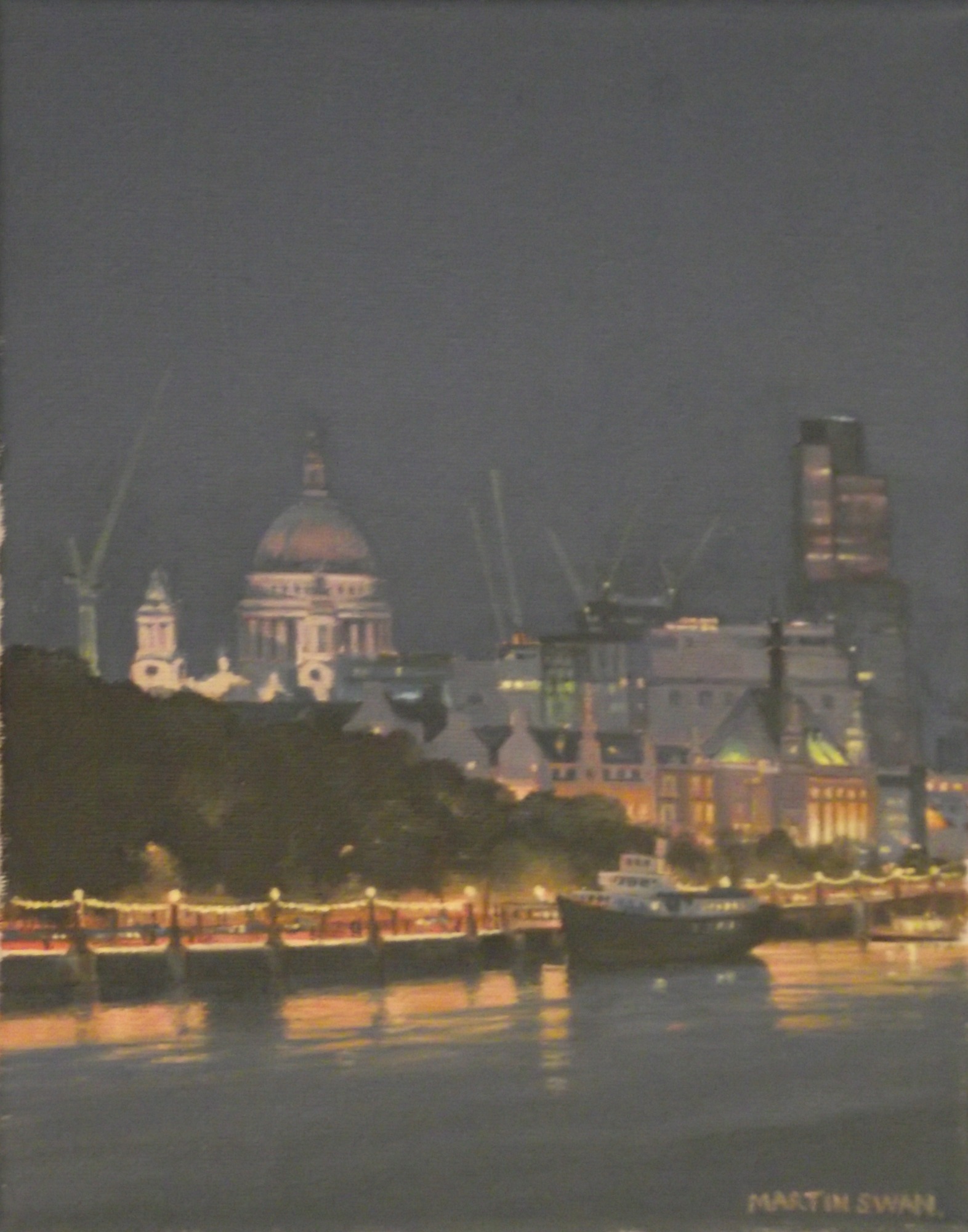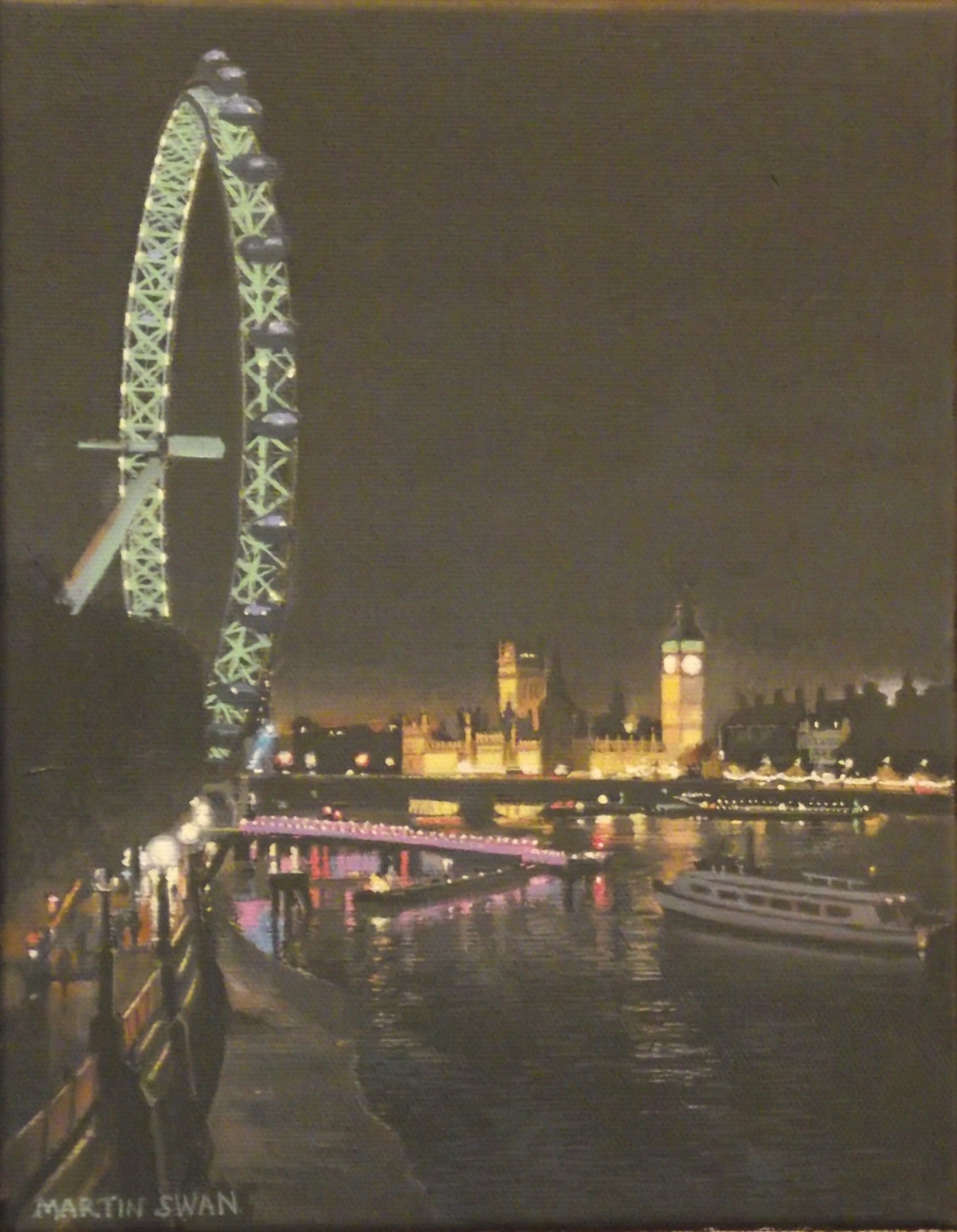 5 small paintings of London at night